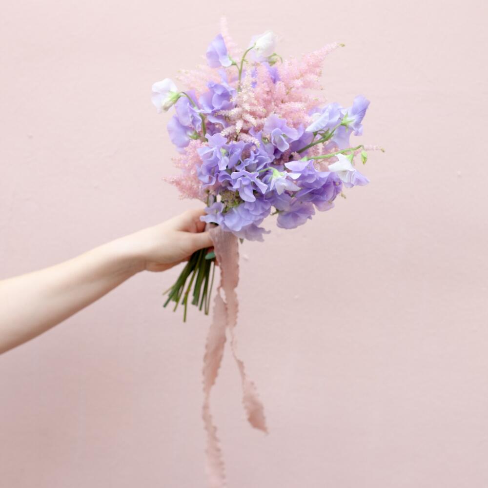 Латирус – 13 шт.Астильба – 5 шт.сумка переноска – 1 шт.ваза крафт – 1 шт.