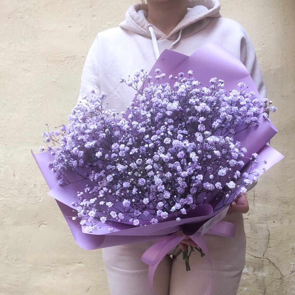 Гипсофила – 7 шт.Упаковка корейская пленка – 2 шт.Лента атласная – 1 шт.
