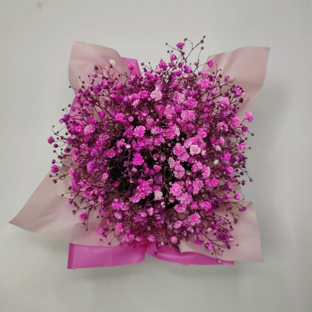 «Лавандовое созвездие» Букет из розы, гвоздики, статица и хлопка