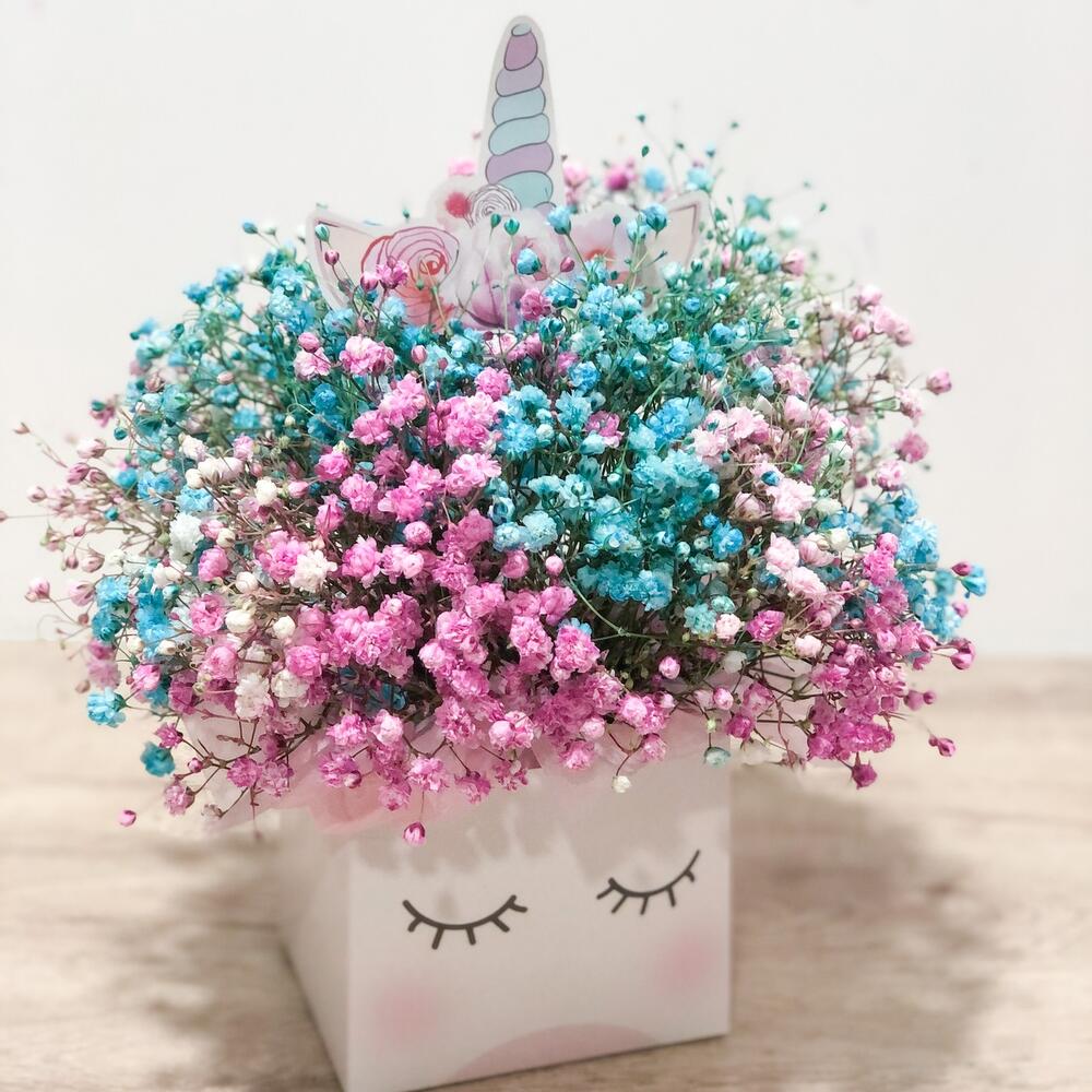 Гипсофила – 5 шт.коробка единорог – 1 шт.Оазис флористический – 1 шт.Тишью – 4 шт.