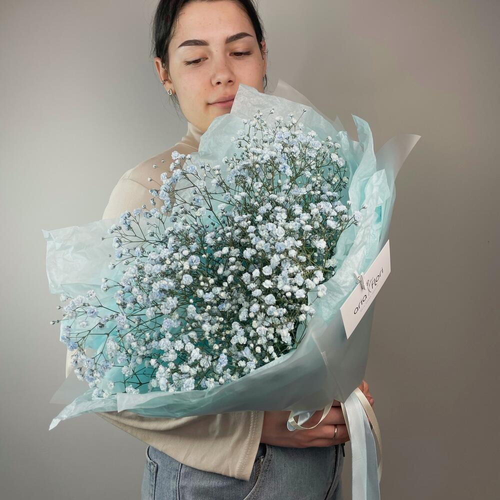 Гипсофила – 5 шт.Упаковка дизайнерская – 1 шт.подкормка для срезанных цветов – 1 шт.любовь флориста – 100 шт.записка с вашим текстом – 1 шт.медиант ручной работы – 1 шт.советы по уходу за срезанными цветами – 1 шт.