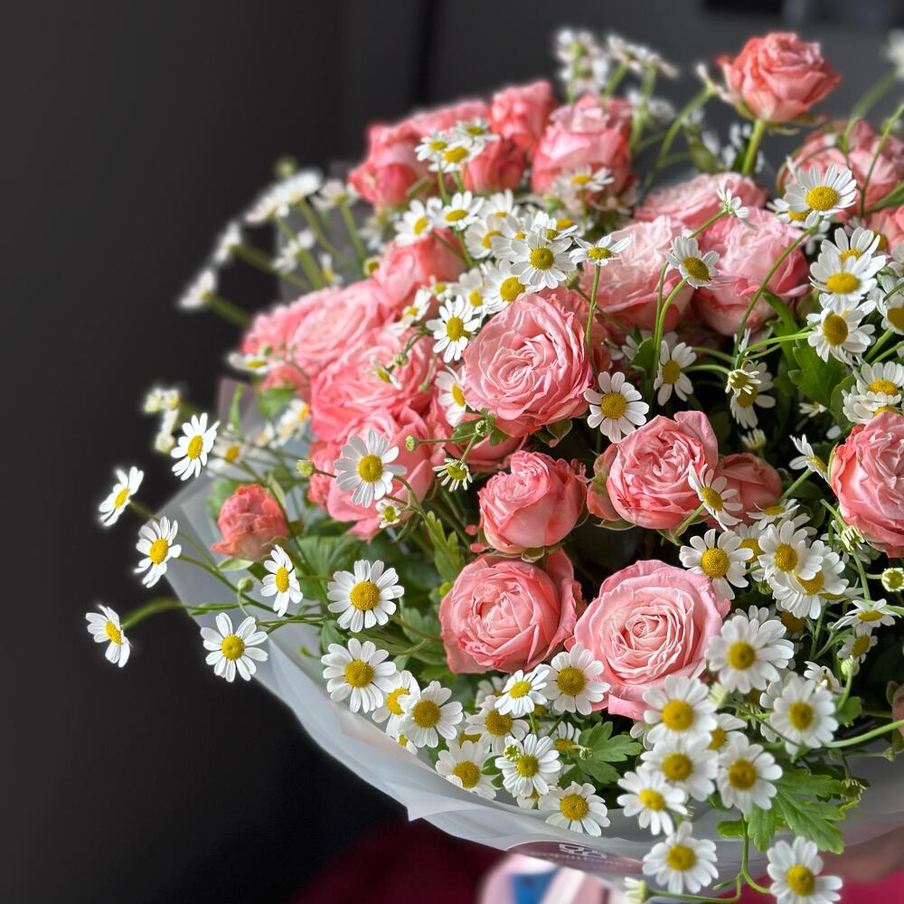 Категории: Кустовые розы, Розы, Ромашки