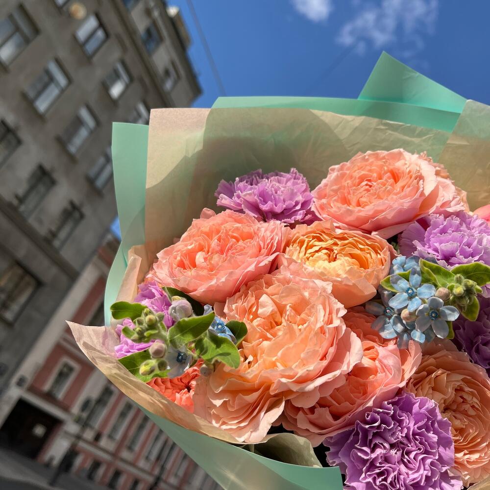 Категории: Гвоздики, Пионовидные розы, Розы