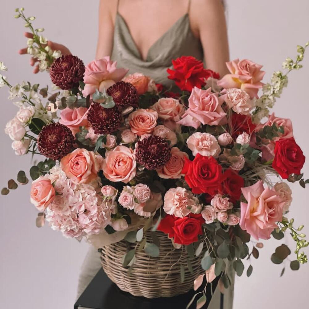 Категорий: Гвоздики, Гортензии, Кустовые розы, Пионовидные розы, Розы, Хризантемы