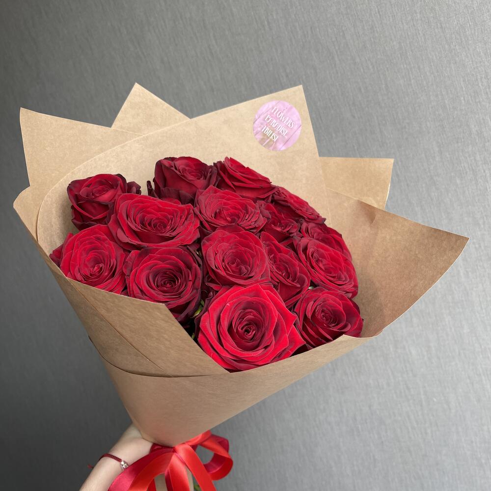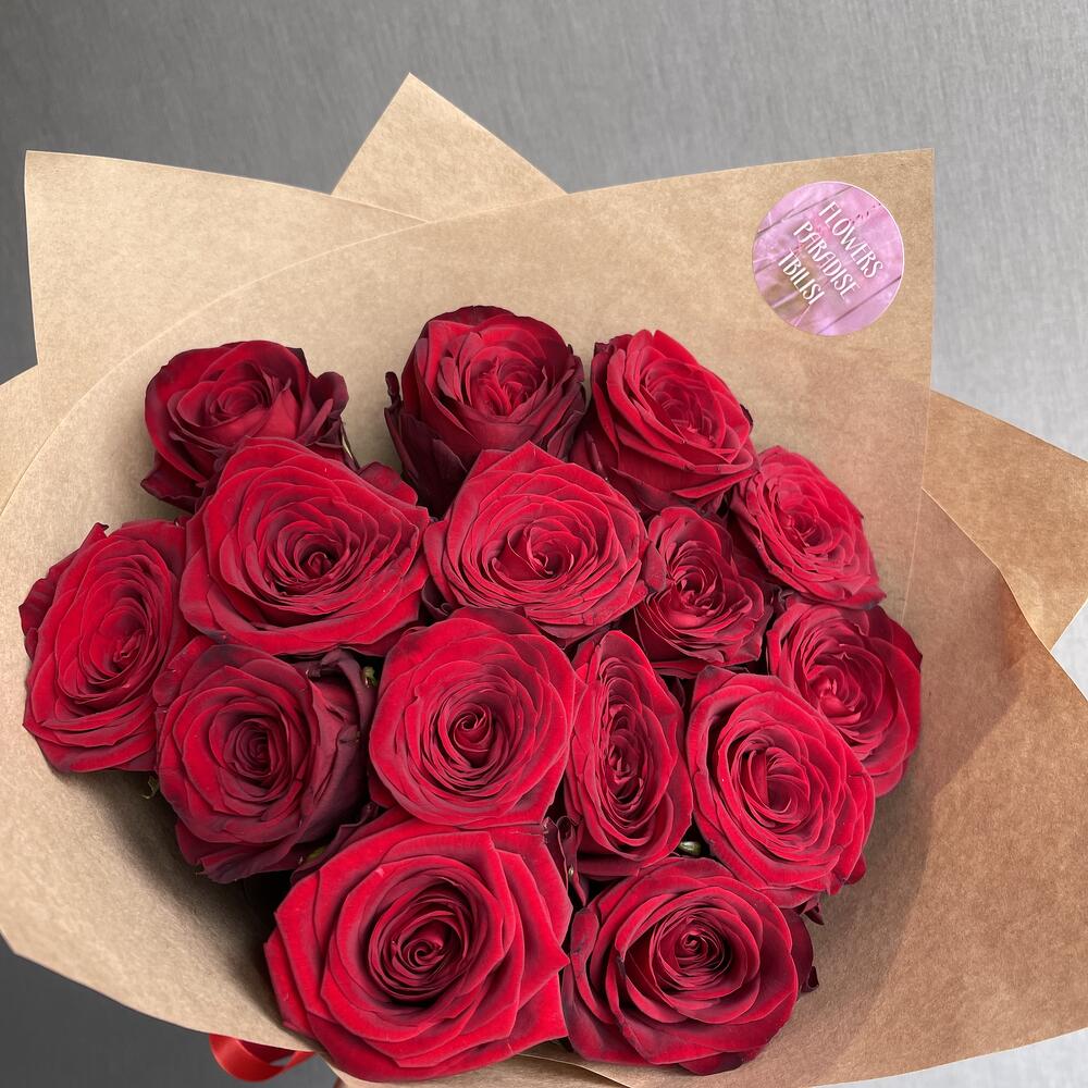 Монобукет из 15 красных роз в крафте