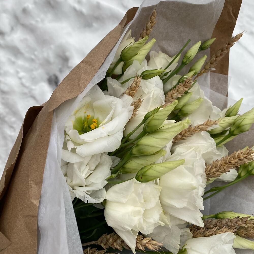 Лизиантусы с пшеницей в крафте